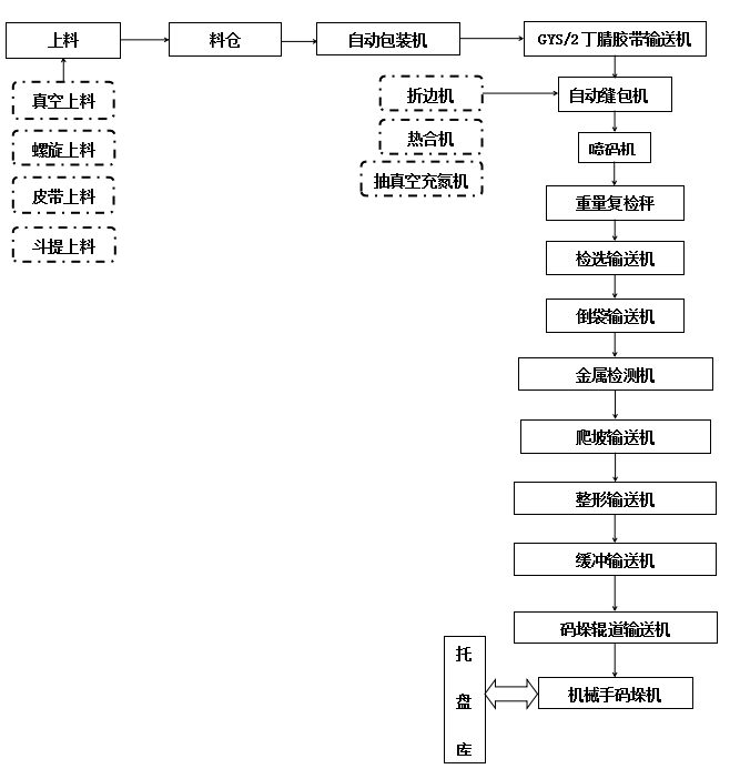 适用范围 氯化钾、氯化钙、片碱、苯酐、抗氧化剂、电池材料、氧化锌、氢氧化铝、高氯酸钾、医药中间体等粉状、片状物料的包装生产线